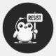 Adesivo Redondo Cartoon Penguin Holding Sinal RESIST - B & W