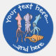 Três bonitinhos desenhos de lula e uma casca de triton. Cor de fundo personalizada. Dois campos de texto em círculo.