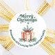 Perfeito para presentes caseiros. Um fundo branco, texto verde. Feliz Natal é escrito com uma fonte de estilo retrô. Decorado com uma caixa de presentes. Personalize e adicione sua família