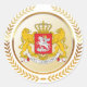 A casaco nacional de armas da Geórgia é impregnada numa forma falsa de círculo dourado, que ela própria é colocada entre uma falsa coroa de ouro.