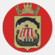 Casaco de Braços do município de Sandefjord, na Noruega, com navio viking e baleia.