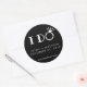 Vinheta redonda de casamento "Eu faço" preto e prata com Casal personalizado e hashtag. Perfeito para festas de noivado, casamentos, celebrações, chás de panela e muito mais. Uso em favores, bolsas de boas-vindas, programas etc.