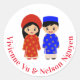 Adesivo Redondo Casal De Casamento Do Dai Do Vietnamita Tradiciona