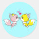 Adesivo Redondo Casal de Raposa Beijando com Pequenos Corações Inc