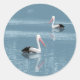 Adesivo Redondo Casal pelicano remando em água azul calma