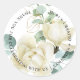 Adesivo de agradecimento de casamento com magnólia e eucalipto em aquarela elegante para selo de convite ou lembrança.