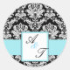 Adesivo Redondo Casamento Azul Monograma Damask Seal