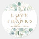 Adesivo Redondo Casamento Botânico Dourado e Verde Obrigado