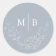 Adesivo Redondo Casamento Botânico Mínimo Dusty Azul Monograma