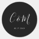 Adesivo Redondo Casamento branco e preto do Monograma Elegante