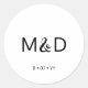Elevem seu casamento ou decor de evento com esses na moda minimalistas adesivos redondos. Apresentando um monograma com uma escrita em preto que chama a atenção e uma inscrição clássica num fundo branco, estes autocolantes são perfeitos para casamentos modernos e retrortemáticos. Personalize as cores do texto e do plano de fundo para corresponder perfeitamente ao seu tema. Adicione um toque de elegância e personalização ao seu dia especial com estes adesivos versáteis. Peça o seu hoje!