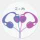 Adesivo Redondo Casamento Cardíaco com Fones de ouvido de Entrada