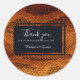 Este é um clássico adesivo redondo clássico de casamento de cobra selvagem luxuoso que vem em diferentes tamanhos, papéis e formas. Tem uma pele cobra laranja, marrom, bege, ouro e preta elegante, moderna e de aparência luxuosa. Este design ajustado perfeito para nossa coleção de casamento de animais selvagens e parece perfeito em cartões de visitas e muito mais. A camada de onyx preto é para sua personalização e monogramas. Hobinishop