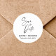 O Casamento da Caligrafia Romântica Salve a Data do Autocolante Clássico Arredondado Personalizado combina o encanto do eterno com elegância personalizada. Feito com uma caligrafia refinada, tem seus nomes e data de casamento, fazer um adorno perfeito para convites, envelopes ou favores de casamento. Sua forma redonda clássica simboliza unidade e continuidade, encapotando lindamente a essência do seu dia especial. Este adesivo serve não só como uma ferramenta prática para anunciar seu casamento, mas também como uma lembrança carinhosa que captura o romance e a singularidade do seu sindicato.
