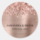Crie seus próprios adesivos de casamento glamourosos modernos ou vedações de envelope. Rosa dourado cintilante, falso, borda superior e um rosa dourado e um fundo de película digital rosado. Personalize o estilo da fonte serif, o espaçamento da letra, o tamanho e a cor.