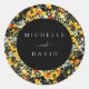 Adesivo Redondo Casamento com Floral Preto Brilhante em Aquarela