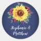 Estes adesivos de casamento apresentam um girassol de cor d'água e design de rosa de burlu com fundo azul marinho. Personalize esses adesivos com seus nomes. Estes adesivos são ideais para serem usados como adesivos de sela de envelope ou para decorar favores de casamento. Fazem parte de uma coleção que inclui artigos de papelaria e presentes de casamento. Visite nossa loja para ver a gama de cheios de casamentos e produtos noivos que você pode personalizar para o seu casamento.