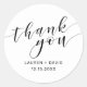 Esses adesivos personalizados adicionarão um toque de elegância aos seus convites de casamento e favores. Este design moderno apresenta um fundo branco com as palavras "Obrigado" na tipografia moderna da escrita e os seus nomes e data para personalizar. Por favor, veja o nosso compro I Love Weddingz para encontrar mais seleções nesta coleção. Desenhada pela artista Susan Coffey.