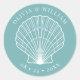 Adesivo Redondo Casamento Costeiro de Praia de Seashell Azul Claro