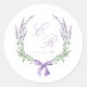 Os adesivos lilac monograma do casamento elegantes com flores de lavanda aquosa e corante verde ferradura acabaram com o arco de coquete bonito. Personalize com o seu monograma na letra lilac da escrita tradicional e na data do casamento no centro.