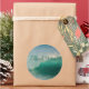Obrigado de casamento de praia, seus adesivos. Turquesa oceano ondas de fundo, com a redação do "obrigado você" na letra moderna do roteiro. Os autocolantes redondos vêm em dois tamanhos e podem ser adicionados à parte posterior dos envelopes ou colocados em embalagens favoráveis.