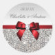 Etiquetas personalizadas e elegantes para casamentos, ou qualquer evento, com lindas sequências de imagens prateadas prateadas joias, padrão de joias, um arco e fita vermelho brilhante e brilhante, e joia de bling de diamante digital bonito e texto de cinza em um fundo de imagem de gradiente prateado. Observe que estes são gráficos impressos. Eu tenho produtos correspondentes para ir com esses adesivos elegantes/selos de envelope na minha loja. Bonita, chique, moda, adesivos modernos para qualquer evento. O texto, a fonte e a cor da fonte podem ser personalizados. Se precisar de ajuda para personalizar seu produto, entre em contato comigo através da minha loja. Ficarei feliz em ajudar.