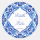 Adesivo Redondo Casamento de azulejo azul Talavera antigo