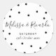Simples bolinhas brancas e pretas estão espalhadas em torno de seus detalhes personalizados de casamento neste adesivo chic de casamento. Projetado por Thisnotme©