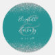 Adesivo Redondo Casamento de Borda Glitter Azul-Teal Moderno