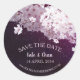 Flores de cereja bonitas e elegantes + fundo roxo rústico desenhado em Casamento personalizado Salve os Adesivos de Data. Fácil de personalizar os adesivos florais com a sua própria redação para um QUERRY BLOSSOM THEMED WEDDING | PINK & PLUM COLOR PALETTE WEDDING ou CASAL PRIMAVERA EXTERIOR. ((Você pode encontrar os principais e favores de casamento nesta loja, Bridal Heaven. Entre em contato com ujean4791@gmail.com para obter trabalho personalizado e/ou coordenar papelaria de casamento.)