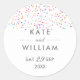 Confetes coloridos arco-íris decoram este adesivo elegante personalizado com seus nomes e data especial. Criado por Thisisnotme©