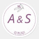 Adesivo Redondo Casamento de Data das Iniciais Brancas Roxas Minim