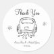 Este clássico adesivo redondo de casamento mostra um encantador retrô, simbolizando a jornada alegre de recém-casados. Perfeito para selar envelopes, decorar favores de casamento, ou adicionar um detalhe inspirado em vintage à sua suíte de papelaria, este design de eterno adiciona um toque de romance e nostalgia à sua celebração.