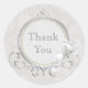 Elegante e na moda Obrigado... adesivos de casamento / selos de envelope com duas pombas brancas giras voadoras, sentadas sobre um belo quadro de prata ornamentado, com rendas e pérolas sobre um fundo branco chic. Bonita, chica, moderna design com uma sensação de vintagem romântica. Perfeito para primavera, verão, outono/outono ou casamento no inverno. ©Hazel Kinvig-Paul www.design-a-dream.co.uk POR FAVOR NOTA: Todos os produtos do Zazzle têm imagens impressas planas. Texto, fonte e cor da fonte são todos personalizáveis. Tenho produtos correspondentes na minha loja. Se precisar de ajuda para personalizar seu produto, entre em contato comigo através da minha loja e eu ficarei feliz em ajudar.