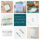 Este design de guardanapo de papel de casamento exumenta uma vibração tropical com flores tropicais pintadas à mão e deixa a borda colocada sobre um fundo branco. A sensação acolhedora desta design faz dela a adição perfeita a qualquer casamento.