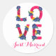 Adesivo Redondo Casamento de Flores de Amor Rosa-Recem casados Flo