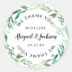 Adesivo Redondo Casamento de Folhagem Fresca Obrigado com Favor de