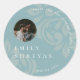 Adesivo Redondo Casamento de Foto Clássico Elegante Pewter Blue Da