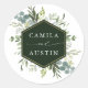 Este adesivo de casamento apresenta cores aquáticas pintadas de eucalipto, folhas verdes, flores com uma falso estrutura geométrica de hexágono dourado. Para personalização mais avançada deste design, clique no link "Personalizar mais". Itens correspondentes também estão disponíveis.
