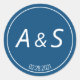 Adesivo Redondo Casamento de Iniciais Azul Clássico Mínimo de Data
