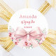 Adesivo Redondo Casamento de laço rosa Flores Festa de Noiva