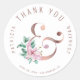 O obrigado de casal de casamento moderno, elegante, etiqueta adesiva redonda/favor ou selo com lindas flores rosadas magnólias cor-de-rosa com folhagem de eucalipto, e deixa buquê com uma ampola cintilante de cobre de ouro rosa contra um fundo branco claro (alterável). ++++++ Personalize com os nomes da noiva e do noivo e seus detalhes de casamento!