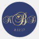 Adesivo Redondo Casamento de Monograma Azul Dourado Elegante