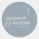 Adesivo Redondo Casamento de Monograma Azul Moderno - Dusty - Obri
