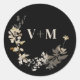 Adesivo Redondo Casamento de Monograma Botânico Branco-Negro-Russo