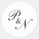 Vinheta de casamento tradicional em preto clássico e branco com um simples design com seu monograma inicial em uma caligrafia elegante. Esta design de classe é perfeita para um casamento formal. Estes autocolantes são excelentes como selos de envelopes ou para favoritos para festas.