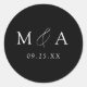 Adesivo Redondo Casamento de Monograma Branco e Preto Elegante Mod