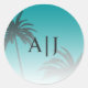 Adesivo Redondo Casamento de Monograma de Praia Tropical Verde