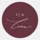 Marsala simples e elegante e adesivo de casamento branco e burgundy apresenta uma caligrafia elegante de amor em branco e um monograma clássico.