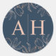 Adicione um toque de sofisticação à sua papelaria de casamento com este adesivo azul escuro, personalizado com o seu monograma e adornada com delicada folhagem de ouro rosa. Perfeito para selar convites, caixas de favor ou cartões de obrigado-você, este adesivo elegante combina um rico fundo azul escuro com sotaques luxuosos de ouro rosa para um visual moderno, porém eterno. É um toque ideal para terminar para adicionar coesão e estilo aos seus detalhes de casamento.